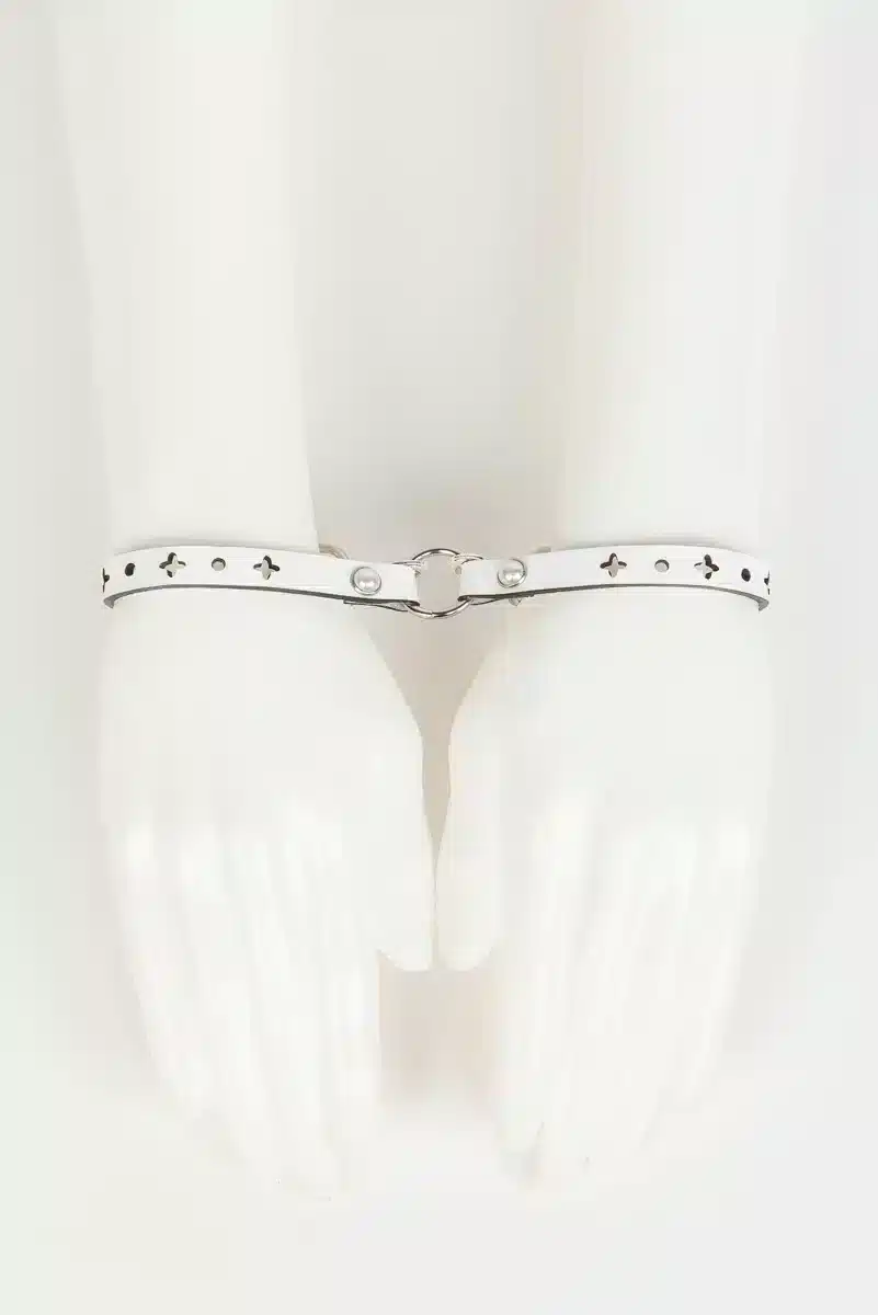 T-Strap Mogelijkheden: Handboeien, Halsband of Leiband en zelfs te gebruiken als een leren Kattenstaart wanneer bevestigd aan de achterkant van een van onze leren jarretels.
