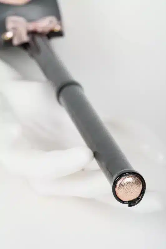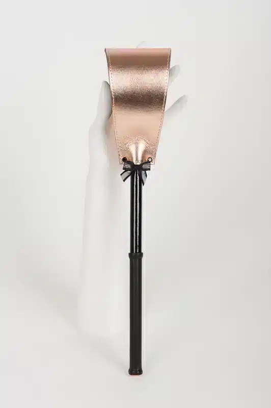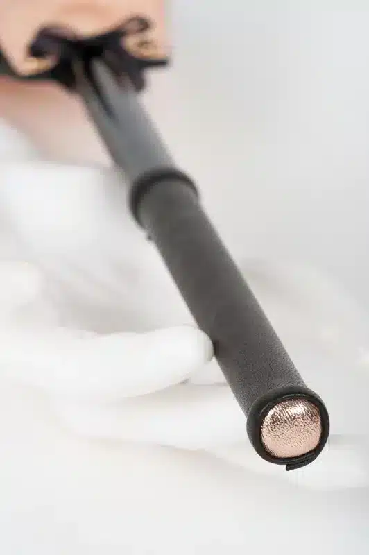 Het ultieme romantische luxe slaapkamer accessoire. Een mix van metallic en zilver leer wordt gebruikt in deze met de hand vervaardigde spanking zweep. Elk item is uniek en zal gegarandeerd aandacht trekken in de slaapkamer.