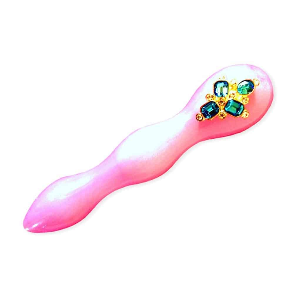 De Shiri Zinn Roze Swarovski Glass Dildo is ingelegd met premium Swarovski-kristallen die stevig zijn bevestigd aan het glazen uiteinde van deze luxe dildo, vervaardigd door de makers van Formule 1-trofeeën en zilversmeden van Rolls Royce. Het is een eerbetoon aan de beste Engelse glasblazers, liefdevol met de hand vervaardigd van Dartington handgegoten kristalglas in een zachte, stralende roze tint.