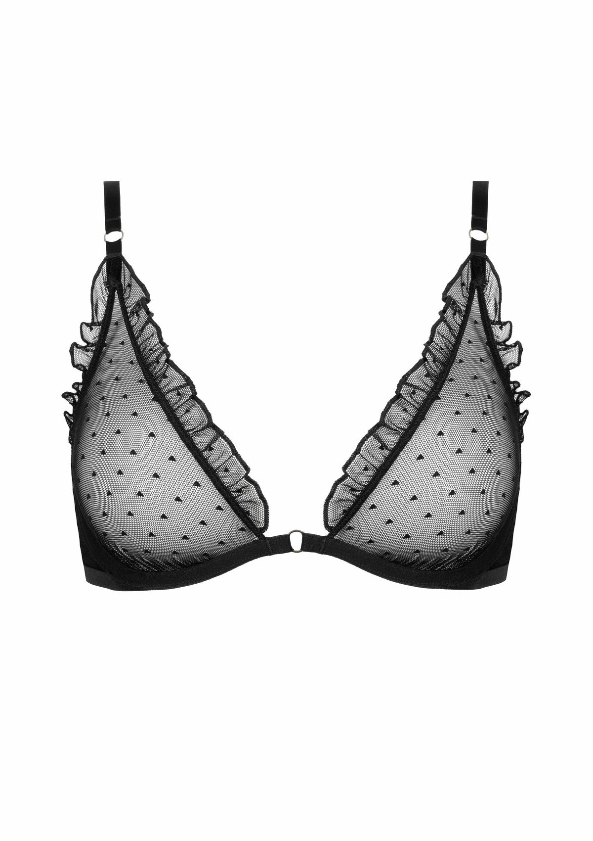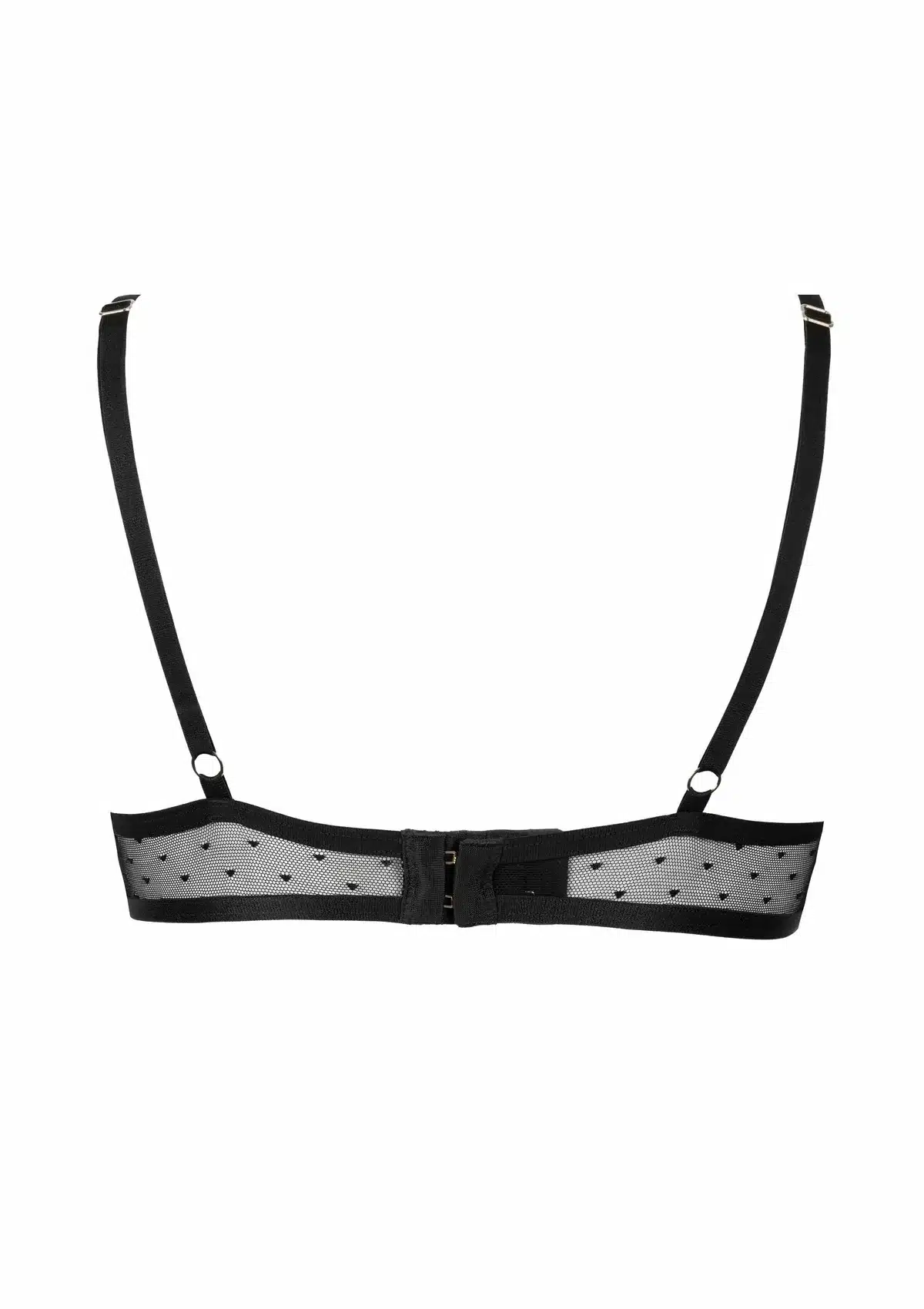 Uitgevoerd in luchtig plumetis-tule met verfijnde stippen laat deze beha de huid subtiel doorschemeren, terwijl de triangle-cups met beugels zorgen voor een natuurlijke vorm en discreet draagcomfort.