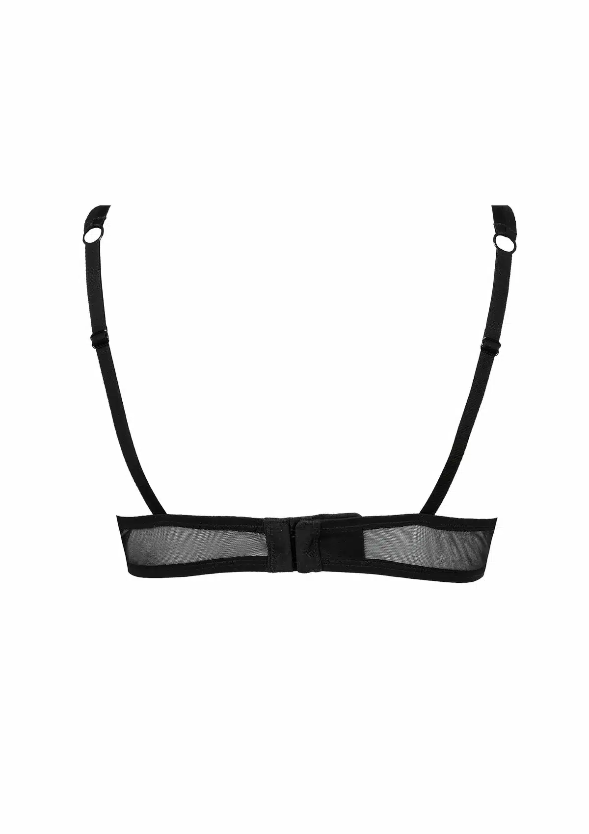 De dubbele schouderbandjes zijn afgewerkt met sierlijke juweldetails, wat het ontwerp een extra elegante en couture-achtige touch geeft. In het midden bevindt zich een opengewerkte separator, subtiel geaccentueerd met een fijn bewerkt juweel dat het geheel samenbrengt.