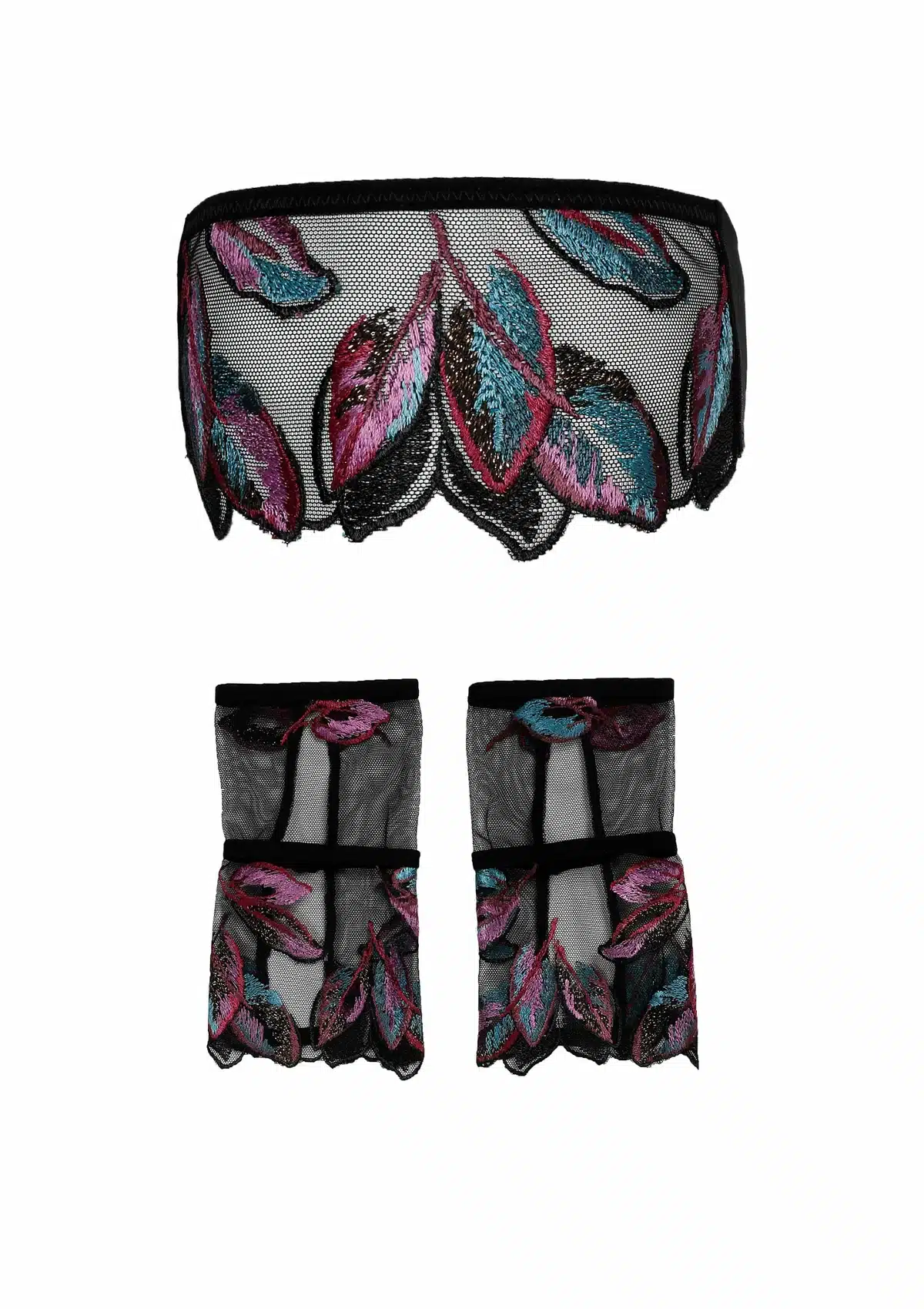 Samen vormen ze een complete set voor speelse, romantische en sensuele momenten. De geborduurde details geven een luxueuze touch en zorgen dat het geheel perfect past binnen de Oiseau de Paradis-collectie.