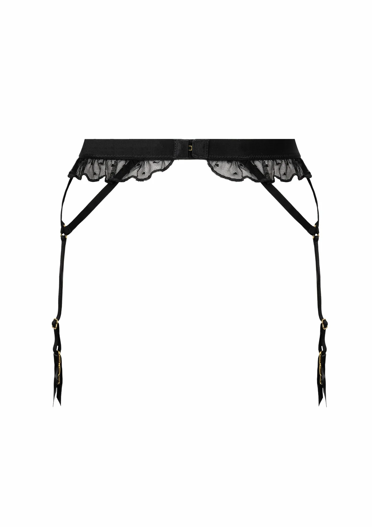 De verstelbare jarretelles accentueren de benen op subtiele wijze en zorgen voor een perfecte pasvorm, of je de jarretelgordel nu combineert met bijpassende kousen of draagt als onderdeel van een complete Coup de Foudre-look.
