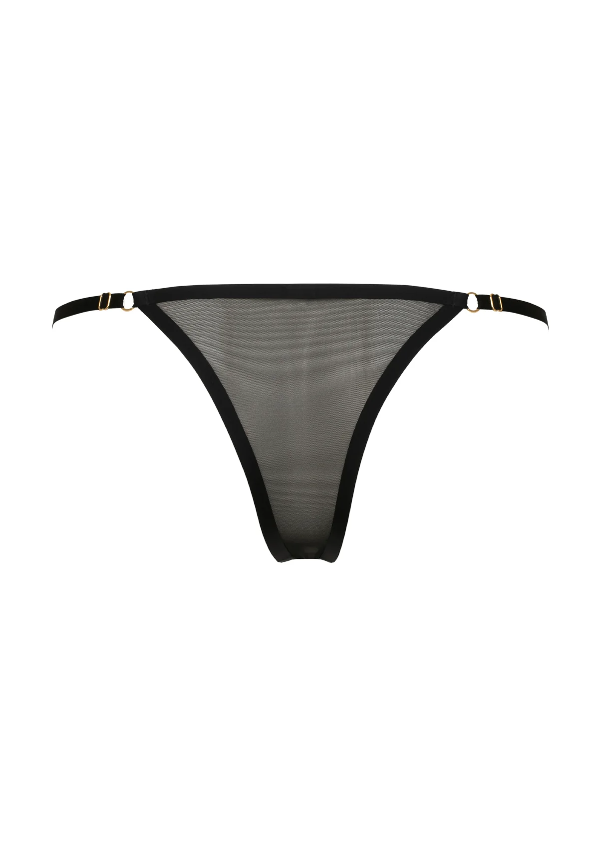 De Tanga Insoutenable Légèreté is vervaardigd uit zachte, transparante tule die licht en comfortabel draagt. De zijkanten kunnen elegant geopend worden dankzij subtiele gouden knoopjes en sierlijke juweeltjes, wat de vrouwelijke vormen speels accentueert. Het verfijnde ontwerp sluit naadloos aan op de bijpassende bralette en andere items uit de Insoutenable Légèreté-collectie.